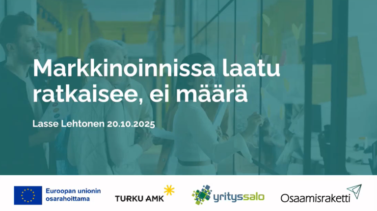 Markkinoinnissa laatu ratkaisee, ei määrä (Lasse Lehtonen)Treenissä käymme läpi modernin digitaalisen markkinoinnin tärkeimmät toimintatavat ja työkalut, tarkastelemme miten tekoäly muuttaa......